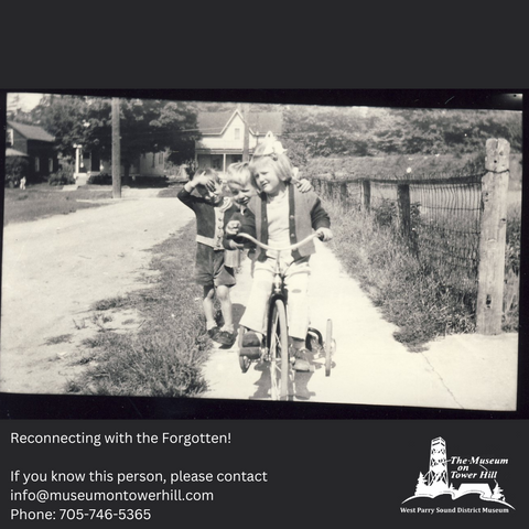 Since the start of the West Parry Sound District Museum, our staff has collected items with the purpose of preserving and sharing the history of the District. A part of that includes preserving the human stories and lives behind an item, which is especially important with photographs. The exhibit's curator, Michaela Dickens, has meticulously gathered these images from diverse sources within our Museum's collection to present them in an evocative montage. It is their hope that the community of the West Parry Sound District and all those who have a connection to its past will aid us in our endeavour to return identities to faces that have been lost to time. We ask that you immerse yourself in studying these faces for hints of connection and in the responsibility of being a storyteller for the forgotten in this exhibit and in your daily life.